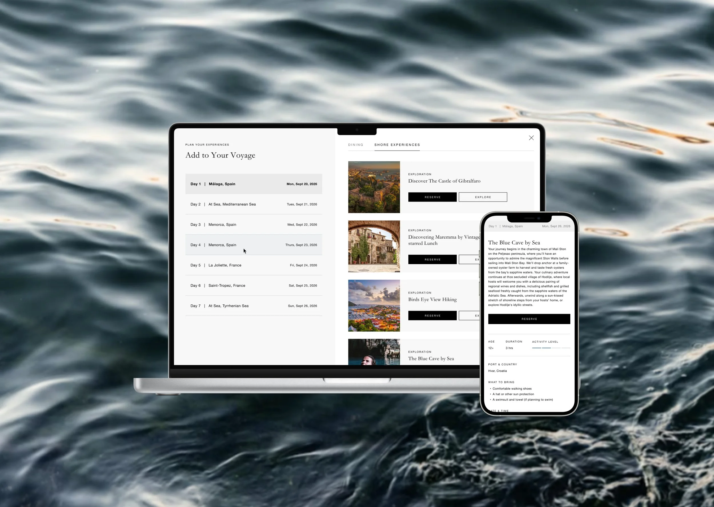 Just as the yacht blends world-class amenities with personalized service, the digital experience mirrors that balance—pairing sophistication with ease, and modern luxury with intuitive design. The result is a refined, immersive expression of the Four Seasons Yacht: serene, tailored, and unlike anything else on the water.